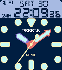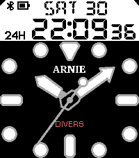 Watch face inspired by the analog/digital Seiko Arnie watch. Appearance is greatly customizable, by changing colors and labels in the settings. To achieve maximum power efficiency, the seconds hand stops ticking after a few seconds. Shake/tap the watch to temporarily restore the ticking. Power saving can also be tweaked in the settings.