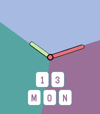 A playful, retro-modern watch face that uses bold colour-blocked wedges, minimalist hands or numerals, and soft accent tones to make time feel both graphic and fun. Plenty of customisation! - Three display styles: analogue, digital-small, digital-large - Two complications - Heaps of preset colours! - Custom colour picker for your own themes!