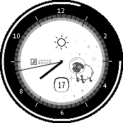 A clean, functional Pebble watchface with battery, weather, and date, wrapped in a minimalist layout. Features sheep drifting through space...