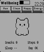 Feed, clean, play, and meditate with a tiny wrist pet. A daily ritual that revives pixel‑era nostalgia and turns small habits into a warm, retro moment. The gameplay is intentionally simple. To obtain food, players must walk in real life: every 250 steps earned translates into one food item. In addition, getting enough sleep provides an energy bonus. Meditation also restores energy, but it can only be used three times per day. Aside from that, feeding and cleaning are simple one-tap actions, as there wasn’t enough time to implement mini-games. The source code will likely be open-sourced after the contest ends, if time permits and nothing gets overlooked.