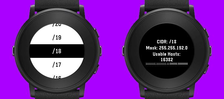 Remember subnets on your wrist, not in your head. Main purpose is translating between CIDR notation and traditional masks. Also shows some other useful info, especially on Chalk, Emery, and Gabbro.