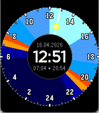 A 24h watchface showing sunset and sunrise. Inspired by the Solar Dial watchface from Apple.