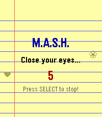 MASH! You know it! Pick your categories and options and seal your fate! It's never wrong! ________ Option if you want to mentally pick an option not listed, but i tired to include a lot of fun options!