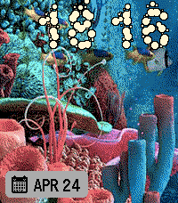 Time floating inside of beautiful tropical aquarium. Shake the watch to cycles thru: Date 📅 Day of the week 📆 Steps count 👟 Calories burned 🔥 Distance walked 🚶(miles or kilometers, depending on your preferences) Active time ⚡ Heart rate ❤️ Battery charge 🔋 4 animations mode - No animation - Animation on shake (3 sec) - Animation every minute (3 sec) - Always animated. Note: Continuous animation will drain the battery faster.