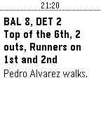 This app provides play by play accounts of MLB games in progress. The watch vibrates to alert you of changes in the game being followed. It checks for updates every 30 seconds, but you can trigger it by flicking your wrist. Note: This app is not affiliated with Major League Baseball, and is unofficial. The API used is not mine, so I cannot guarantee the accuracy of the data presented.