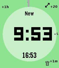 # pebble-timer-quick QuickTimer is a timer app for the Pebble Smartwatch, intended to be the fastest way to start a timer or stopwatch. Made for people that think needing 5 seconds to set a countdown timer or stopwatch is far too long. With QuickTimer, rest assured that you are not fiddling away precious moments of your life. QuickTimer starts counting as soon as you open the app. First press the button, then think how long the timer needs to be. If you want a timer for 1 minute and it takes you 6 seconds to start the timer, then your timer will be off by 10%, and that can be life or death. If you like your soft boiled eggs cooked for exactly 6 minutes and 20 seconds, QuickTimer will help you get the gooey texture you desire. QuickTimer works by pressing buttons to increment the countdown timer by set amounts (1, 5, 20, 60). Once you get used to this, you can set a timer without even looking at your watch. Here's how it works: - Open the app - You enter new timer mode where each button press adds a given amount of minutes to the total countdown time - After 3 seconds of inactivity your timer is set - If you don't press anything, QuickTimer goes into stopwatch mode instead - Once you are in counting mode, you can edit your timer, restart your timer, or you can enable repeat timers - Timers that are in alarm can be repeated, snoozed for 5 minutes, or silenced to become post timer stopwatches. Based on [YclepticStudios/pebble-timer-plus](https://github.com/YclepticStudios/pebble-timer-plus).   ## Buttons ### New timer mode - Back: Add 1 hour - Up: Add 20 mins - Select: Add 5 mins - Down: Add 1 min - Hold Up: Toggle reverse direction (increments become decrements) - Hold Select: Switch to EditSec mode (seconds granularity) - Hold Down: Quit app and delete timer After 3 seconds of inactivity, the timer is set and transitions to counting mode. ### EditSec mode (seconds granularity) - Back: Add 60 seconds - Up: Add 20 seconds - Select: Add 5 seconds - Down: Add 1 second - Hold Up: Toggle reverse direction - Hold Select: Switch back to New mode (minutes granularity) - Hold Down: Quit app and delete timer ### EditRepeat mode Entered by holding Up while in counting mode (countdown timers only). - Back: Reset repeat count to 0 - Up: Add 20 repeats - Select: Add 5 repeats - Down: Add 1 repeat - Hold Down: Quit app and delete timer ### Counting mode - Up: Enter edit mode - Select: Toggle play/pause - Down: Extend high-refresh display rate - Back: Quit app - Hold Up: Toggle repeat mode on/off (countdown only) - Hold Select (running): Restart timer to original length - Hold Select (paused): Reset to 0:00 and enter EditSec mode - Hold Down: Quit app and delete timer ### Alarm mode When a countdown timer expires, it enters alarm mode (vibrating). - Up: Silence alarm and enter edit mode - Select: Silence alarm and toggle play/pause - Down: Snooze (add 5 minutes) - Back: Silence alarm (timer continues as stopwatch) - Hold Up: Repeat timer (restart with original length) - Hold Select: Restart timer from original length (running) - Hold Down: Quit app and delete timer ## Quickness The table below compares the number of button presses required to set timers in QuickTimer versus in the default Pebble timer. ``` | Timer Amount | QuickTimer | Default Pebble Timer | |--------------|------------|----------------------| | 1 min | 2 | 5 | | 2 min | 3 | 6 | | 3 min | 4 | 7 | | 4 min | 4 | 8 | | 5 min | 2 | 5+ | | 6 min | 3 | 5+ | | 7 min | 4 | 5+ | | 8 min | 5 | 5+ | | 9 min | 5 | 5+ | | 10 min | 3 | 5+ | | 11 min | 4 | 5+ | | 12 min | 5 | 5+ | | 13 min | 6 | 5+ | | 14 min | 5 | 5+ | | 15 min | 4 | 5+ | | 16 min | 5 | 5+ | | 17 min | 6 | 5+ | | 18 min | 5 | 5+ | | 19 min | 4 | 5+ | | 20 min | 2 | 5+ | | 25 min | 3 | 5+ | | 30 min | 4 | 5+ | | 35 min | 5 | 5+ | | 40 min | 3 | 5+ | | 45 min | 4 | 5+ | | 50 min | 5 | 5+ | | 55 min | 4 | 5+ | | 59 min | 4 | 5 | | 60 min | 2 | 5 | | stopwatch | 1 | x | ```