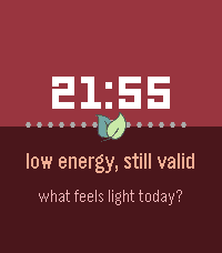 A minimal, reflective watchface for mindful moments. StillTime isn't just a watchface — it's a gentle companion for your day. Each hour, it offers a new vibe and a soft prompt to help you pause, notice, and reconnect with yourself. FEATURES Rotating Vibes - Short emotional phrases that shift hourly like "soft but steady", "tired but trying", "main character energy", and "still becoming". Reflective Prompts - Gentle questions to spark awareness like "what do you notice?", "what feels light today?", and "what can soften?" Hourly Color Schemes (Color Pebbles) - Six calming palettes that rotate throughout the day, from Deep Ocean blues to Northern Lights teals. Subtle Animations (Color Pebbles) - Smooth slide-in transitions when vibes and prompts change. Decorative Icon (Color Pebbles) - A small nature-inspired accent to complement the calm aesthetic. COMPATIBILITY Pebble Time, Time Steel, Time Round: Full color experience with gradients, animations, and icon. Pebble Classic, Steel: Clean minimal design optimized for B&W display. PHILOSOPHY In a world of constant notifications, StillTime creates space. It doesn't demand your attention — it invites reflection. Glance at your wrist and find a moment of stillness.