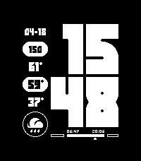 Anticipate! All the basic information you need to be prepared for the day ahead! Features - Today's date - Step Count - Forecasted high temperature - Current temperature - Forecasted low temperature - Current weather conditions - Daily Sunrise and Sunset display with times Weather data by Open-Meteo