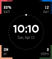 Edge Info Watchface puts time and daily essentials right on the edge of your screen in a clean, modern layout built for both round and rectangular Pebble watches. Track the information you care about with customizable edge slots for battery, date, Bluetooth, steps, calendar week, calendar day, distance, and active time. Choose your own colors for each position, set personal goals for steps, distance, and active time, and pick the seconds behavior that fits your style. Features: - Edge-based info layout optimized for Pebble Time 2 and Pebble Round 2 - Customizable metrics in all four edge positions - Per-slot color customization - 12-hour or 24-hour time format - Steps, distance, and active time goal settings - Multiple seconds animation modes - Pebble Health support for live daily activity data Edge Info Watchface is made for people who want a minimal watchface that still keeps useful information close at hand.