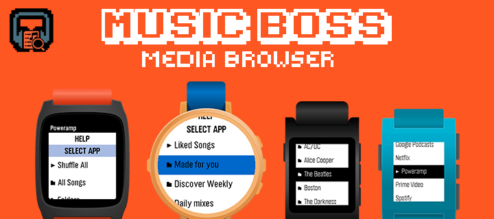 Music Boss Media Browser is a brand new experience for Music Boss Deluxe users - bringing full library browsing directly to your Pebble for the first time.