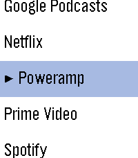 PowerAmp, Podcast Addict, Spotify, Musicolet, GoneMAD, VLC and more.
