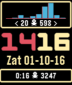 Clean watchface with on top a bar chart representing activity (steps). The bar chart represents the past 2 hours and is updated every minute. 12/24 hour support (double digit), languages English, Dutch, French, Spanish, German and Italian. Colors for every element are configurable. European and American date presentation. BT warning buzz (can be switched off) with color change of minute display. Configurable battery level warning. Under the graph the minimum and maximum calculated value is shown. Each bar represents 12 minutes. Below the time and date a summary is shown. It shows the active time from start of day and the walked steps since start of day. The price is just $3.95 This watchface will also run on Pebble 2/Pebble Time 2 and features a heartrate monitor in the bar chart.