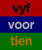 Die tyd in Afrikaanse woorde, nou met kleur gebaseer op die vlag! Ek is besig om te werk aan keuse van kleur vir die gebruiker.