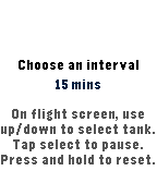 Are you a pilot with a Pebble? Use this app to keep track of switching between left and right tanks of your airplane. Instructions: use up/down keys to select tank timer interval, then click select button to proceed. On the "miniature airplane" screen, use top button to select left wing, and bottom button to select right wing. Select button will pause/unpause. Press and hold the select button to reset. If you leave the app while it's running, it will re-open when it's time to switch tanks. After 24 hours, the app always auto-resets. Open source, and pull requests are accepted. (header image credit: http://bit.ly/1CclfyF) (NOTE: This is a hobby project, and not a piece of approved avionics. Please use responsibly and have a backup flow.)