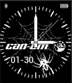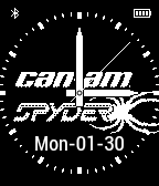 This anolog watch face has the can am logo as well as the BRP. The spider Webb in the middle with a spider getting ready to attack. The date shows month and day. Vibrate on disconnect and reconnect.