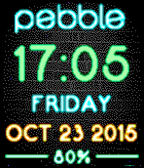 Digital watchface in dark neon lights. Created with Watchface Generator -- Looks a lot better on Pebble Time.