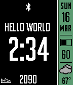 Design and Art Direction by Paul Joel - www.pauljoel.com Simple and clean watchface featuring large date and time as well as current temperature and weather condition. Battery percentage represented both by number and color of the top line. Bottom line indicates Bluetooth connection, it disappears upon Bluetooth disconnect. Configurable option include date, time and temperature format as well as vibe on Bluetooth disconnect and color inversion. Multi-language support.