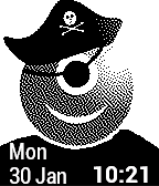 An alien pirate has been spotted high in the hills above Pongo Beach! The pirate from planet Pignar says he came to the island to take a holiday from plundering intergalactic treasure, but no sooner had he parked his spaceship in Crow Cave than his crew disappeared! Read more about the Alien Pirate on our Pongo Beach web site. Wear the infamous Alien Pirate watchface on your Pebble SmartWatch.