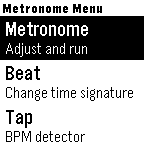 This is a haptic metronome app for Pebble devices. It gives you visual and vibration feedback to display the tempo. It is also possible to configure the time signature and tap in a tempo.