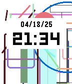 This watchface creates a random background out of up to 30 different shapes. It changes one shape every hour.