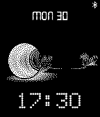Simple digital watch face with bluetooth indicator. Watch face vibrates when loosing bluetooth connection. Thanks to watchface-generator.de