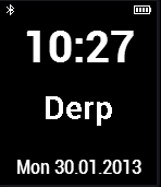A classic digital watch-face with the text 'Derp'