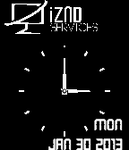 Displays Analog Time, with Date at the bottom - iZND Services Logo is displayed at the Top