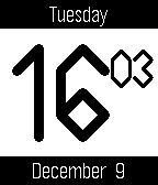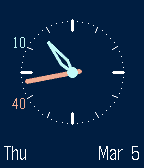 A minimalist digital watchface with analog movement for the minutes. The default color scheme is perfect for the Red & Black PT2! Features: * Configurable Colors * Large hour number * Minute number moves around the dial as time progresses * Great battery life (only one update per minute) * Day of week above the hour number * Date of month below the hour number Acknowledgements: * Thank you to Vernon Adams for the Michroma font