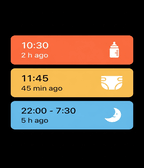 A revival of the Pebby (Baby watch) app - Baby tracking for Pebble smartwatches. Track bottle feedings, diaper changes, and sleep sessions right from your wrist! Each event will also be logged on your timeline for later consultation. Colors have been added to the app to mirror the coloring option from the Huckleberry app. The original Baby watch app has been my MVP app on my pebble for the past 3 months since becoming a parent. I decided to add my twist on it as well.