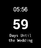 A Pebble watch app for counting down the number of days until an event. Colors can be inverted and the event date, time, and label can be set by accessing the settings in the Pebble application.