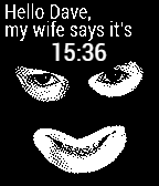 Hello Dave, Papa Lazarou and his wife can now tell you the time. The character from the BBC show 'The League of Gentlemen' works perfectly on a black background.