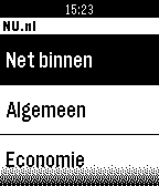 Met de NU.nl app voor Pebble, blijf je ook via het kleinste scherm op de hoogte van het laatste nieuws. Kies voor de rubrieken Net binnen, Algemeen, Economie, Tech, Sport, Entertainment en Overig, en klik op een titel van een artikel om het te openen. Klik op de knoppen aan de zijkant om naar beneden te navigeren.