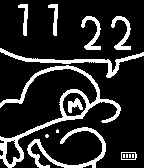 Generated watchface. A not-so-good Mario tells the time. White version. (Font is Futura Handwritten)