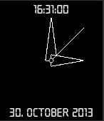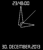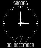 Simple watchface combining analog and digital elements. Danish day and month names.