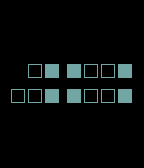 Tell time with squares. Two rows of red squares show the hour on top and the minutes on the bottom. Each square is either filled (on) or empty (off), and you read them like an abacus — each position has a fixed value, and you just add up the ones that are lit.