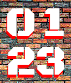 Very simple big and clear look of digital watch having colored brick wall as backgroud