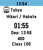 - カラー対応端末は現在時刻の背景色と列車出発後カウントアップのハイライト色を変更できます