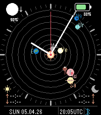 Astronomically accurate solar system watchface with planets and aurora warning.