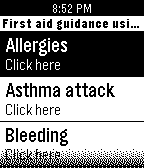 This watchapp is created as a first aid guidance to a number of problems that may occur. This guidance information is taken from the red cross app. Please read the disclaimer and use only if you agree (last title on watchapp)