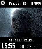 Displays current date, time, stock, weather and location information. Vibrates when bluetooth connection lost. Bonus: tap your watch and read quotes of the greatest Sith Lords of All Time.