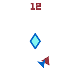 A very simple and minimalistic watchface that uses a triangle to display what hour of the day it is, and an arrow to display the minutes. The center of the watchface is bordered using the same color as the minute hand, and functions as a battery indicator, displaying light blue for a battery above 50%, yellow for below 50%, and red for below 20%.