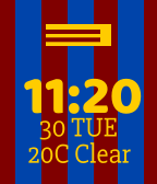 Support your club - Displays time, weather, date and battery level - Switches between home and away styles every hour