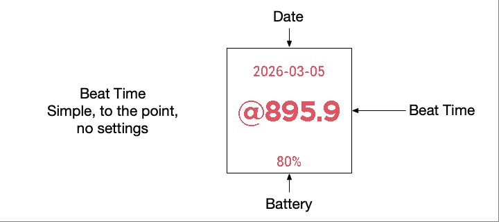 Initial release of an old Pebble app that I never got around to publishing when Pebble was now, but now that we are here for round 2 I'm inspired to share what I have. Very basic implementation of a Beat clock focusing on simplicity and a large font size.