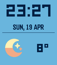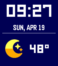 Big on readability, easy on the eyes. Time, date and weather displayed clearly to make for easy reading. Adjustable colors, date format and temperature unit.