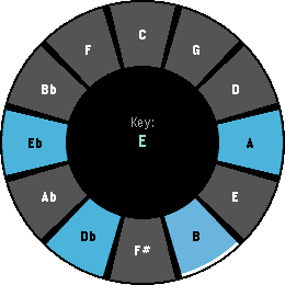 I'm trying to teach myself how to improvise on the piano. I often find myself needing to pull up the circle of fifths or search for progressions. Having all of this on my wrist helps me iterate through things quickly. With the upcoming shipment of the Pebble Round 2, the circle of fifths naturally fits that display. The interface is designed for the Round 2 but works on other hardware as well. The main interface is built around quick progressions and their geometry on the circle of fifths. Users can cycle through a library of common progressions and try them out in any standard key signature. The app also includes a "key finder" to help novices like myself interpret what notes fit into which key signatures. Eventually, I'd love to make this more interactive and let musicians build and store their own progressions. Controls - UP/DOWN: Transpose Key - SELECT: Flip through the current genre of pre-built progressions - Hold SELECT: Browse all genres - Hold DOWN: Open Key Finder