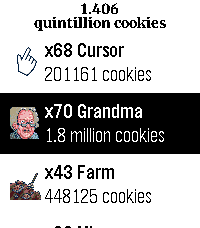 Cookie Clicker on the Pebble Watch! Press the button as fast as possible to get MORE cookies. Cookies are still generated when the app is closed. Press down to enter the shop and purchase buildings to generate even more cookies!