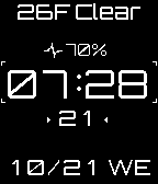 It's a simple digital watch face with slight cyberpunk flavor. Available settings: °F or °C; 12h or 24h; mm/dd or dd/mm date format.