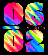 A special version of Iridescency with a unique look, using a framebuffer trick to tell the time in a cool gradient. Every time you open the face, you get a new pattern. Shaking the watch now causes a small animation to play that makes the watch 'shimmer!' Tells time, date, and battery!