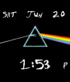Dark Side of the Moon picture animated. The time is in 12hr format with an A or a P to denote AM or PM.