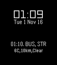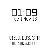public transportation watchface for germany / europe. webscraper for deutsche bahn website. Das Watchface überwacht eine Bahnverbindung inklusive Verspätung und ändert Mittags(konfigurierbar) die Richtung. Vorkommnisse werden mit Ausrufezeichen keine Informationen mit einem Punkt symbolisiert. Als Haltestellen kopiert man sich am besten den offiziellen Namen. Alles was auf der Bahnseite funktioniert sollte auch hier gehen. Die Wetteranzeige gibt momentane Temperatur und Windgeschwindigkeit an. Alles ist sehr individuell einstellbar: Farben, Positionen etc. Für Verbesserungsvorschläge bin ich offen. Empfehlung: Wem dieses Watchface gefällt sollte sich unbedingt auch myBahn angucken: http://tinyurl.com/pebblemybahn ich habe mir das auf einen hotkey gelegt. So hat man die Pendelverbindung immer in aktuell und zusätzlich eine Art PendelPanda falls es mal wo anders hin geht. Die App basiert auf dem gleichen Prinzip (sie holt sich ihre Informationen direkt von bahn.de und stellt diese kompakt auf der Pebble dar) und der Entwickler und ich möchten in Zukunft zusammenarbeiten.